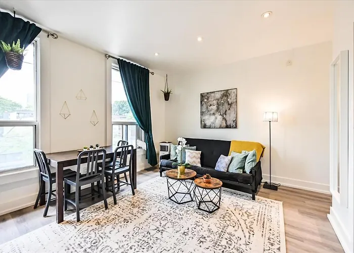 The 1-room 1 Bedroom Oasis In Downtown Toronto apartment lies within 25 minutes' walk of Withrow Park and nearly a 15-minute walk from Dundas tube station. The apartment is also at a medium distance from Allan Gardens and provides cleaning amenities for guests, including a washing machine.